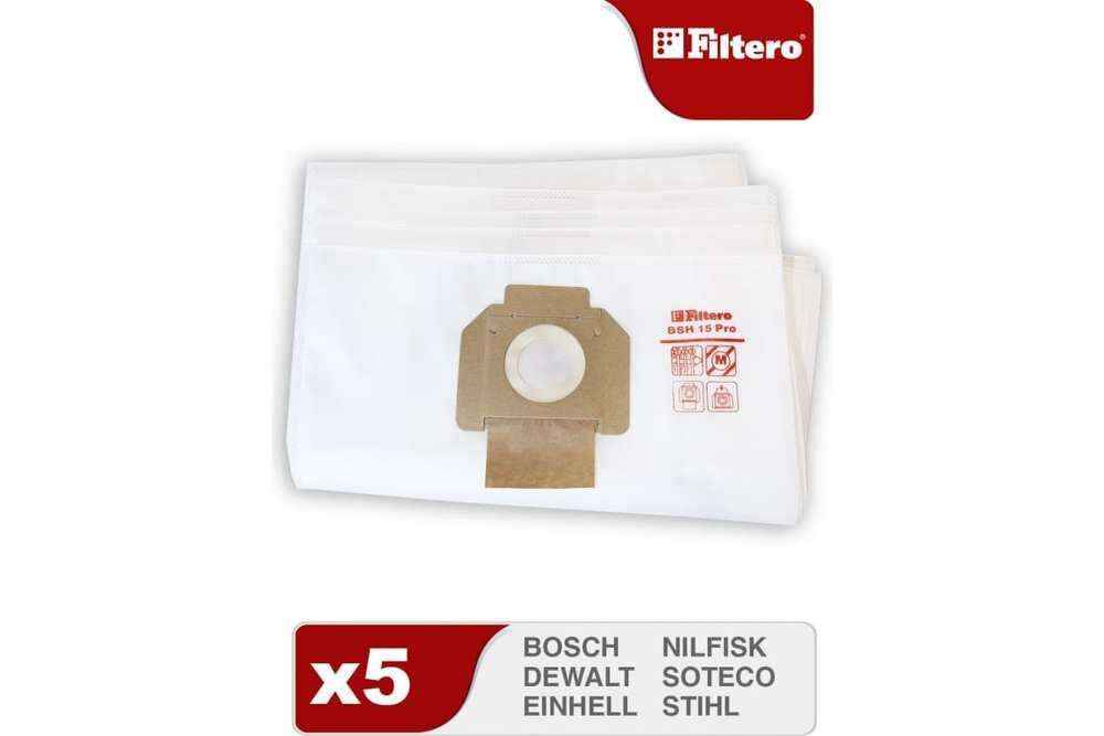 Мешки Filtero BSH 15 Pro для строительных пылесосов Bosch, Dewalt, Festool, Flex, Hilti, Nilfisk, Stihl, 5 штук
