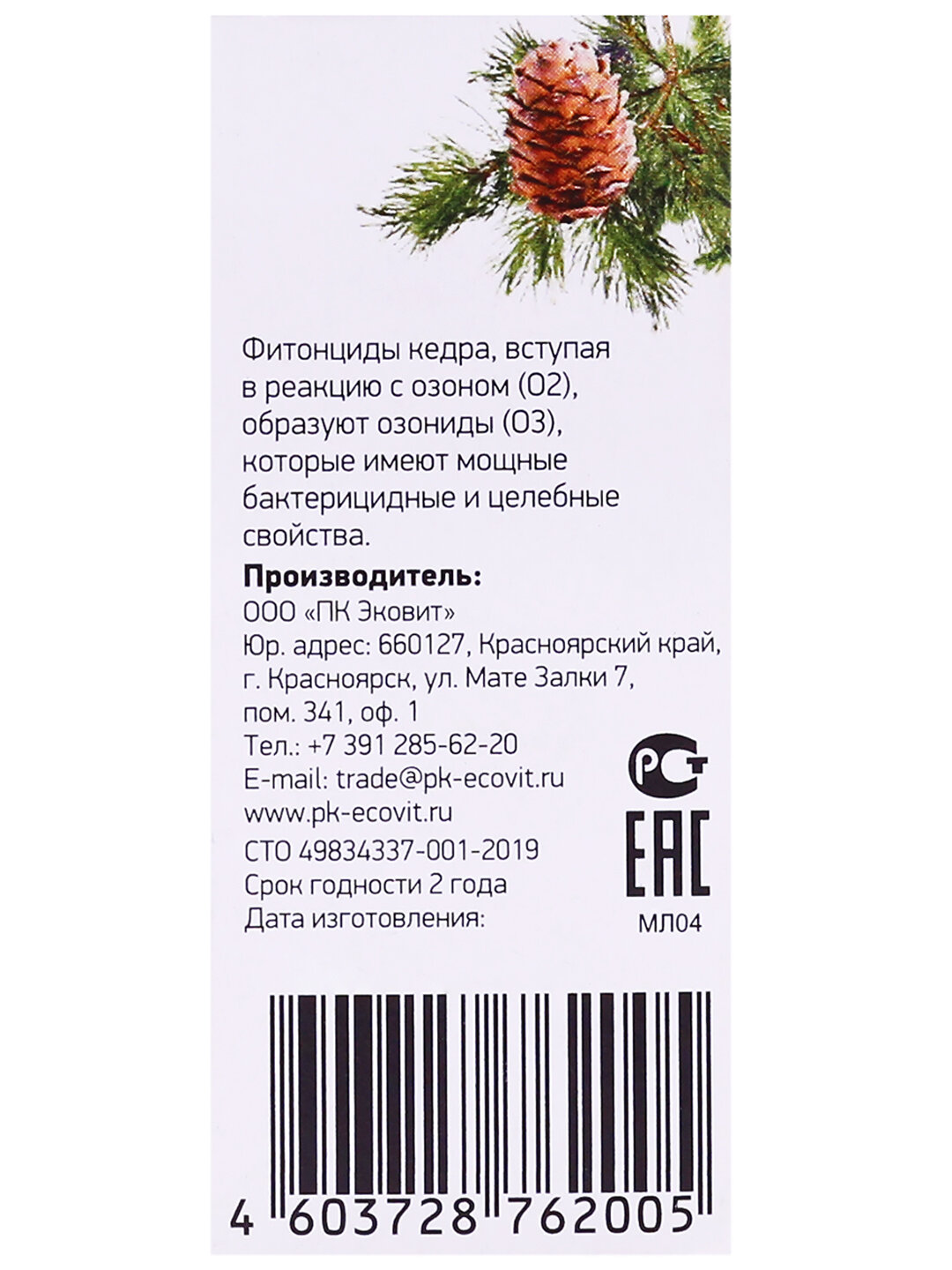 Кедровое масло эфирное, 10 мл - "Эковит+" интересное: