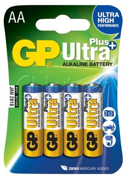 Батарейка GP Ultra Plus Alkaline AA, в упаковке: 4 шт.