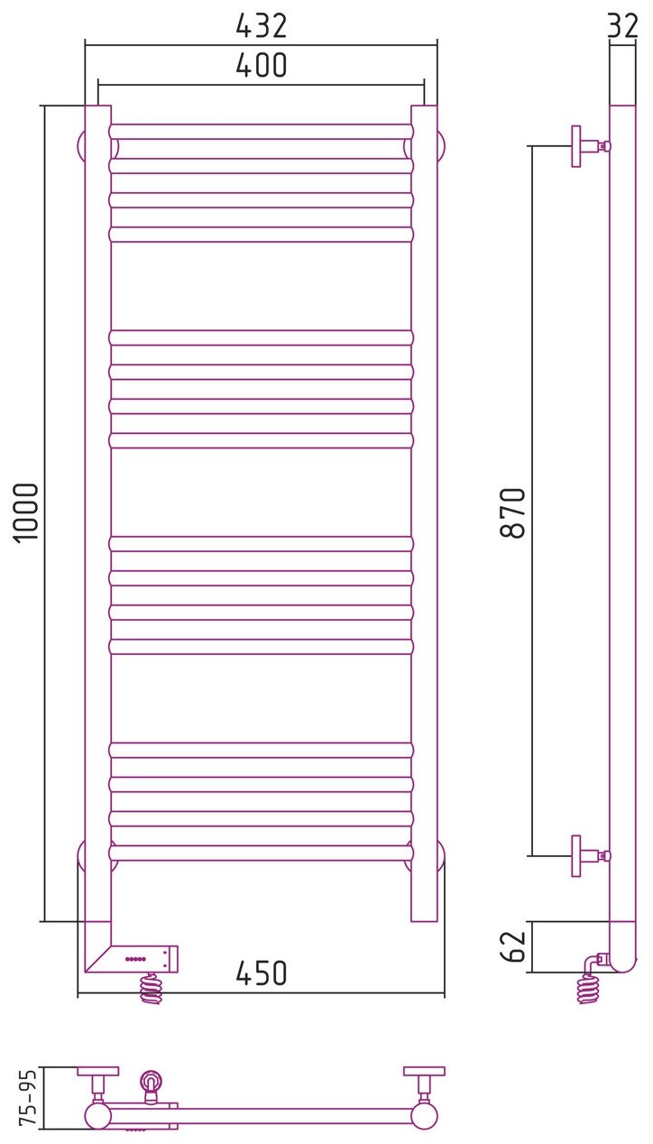 Полотенцесушитель Электрический Тругор Пэк сп 5 П 60х50 черный ВГП