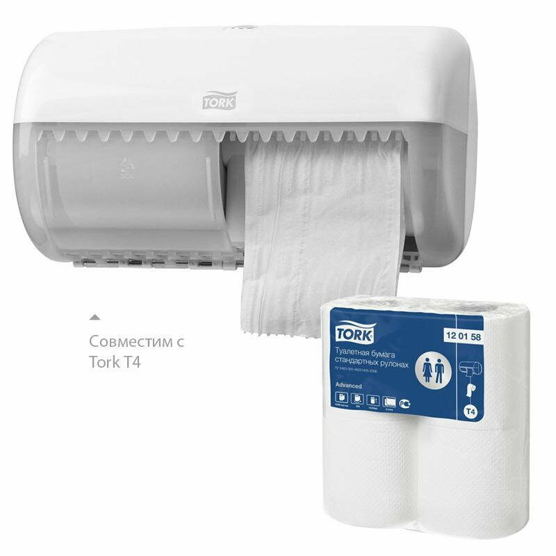 T4 Tork Advanced туалетная бумага в стандартных рулонах, 184 листа, 23м х 9,5см., 2-х слойная, 4 рулона в упаковке, цвет белый (120158)