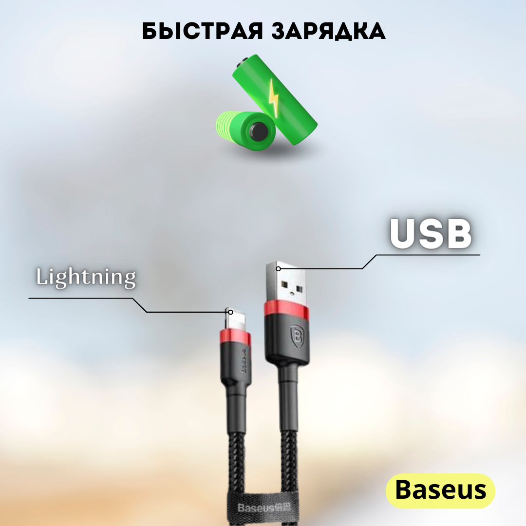 Кабель Baseus Lightning - USB для быстрой зарядки Apple, iPhone, iPad, AirPods, кабель зарядка для айфон 1м, 2,4А
