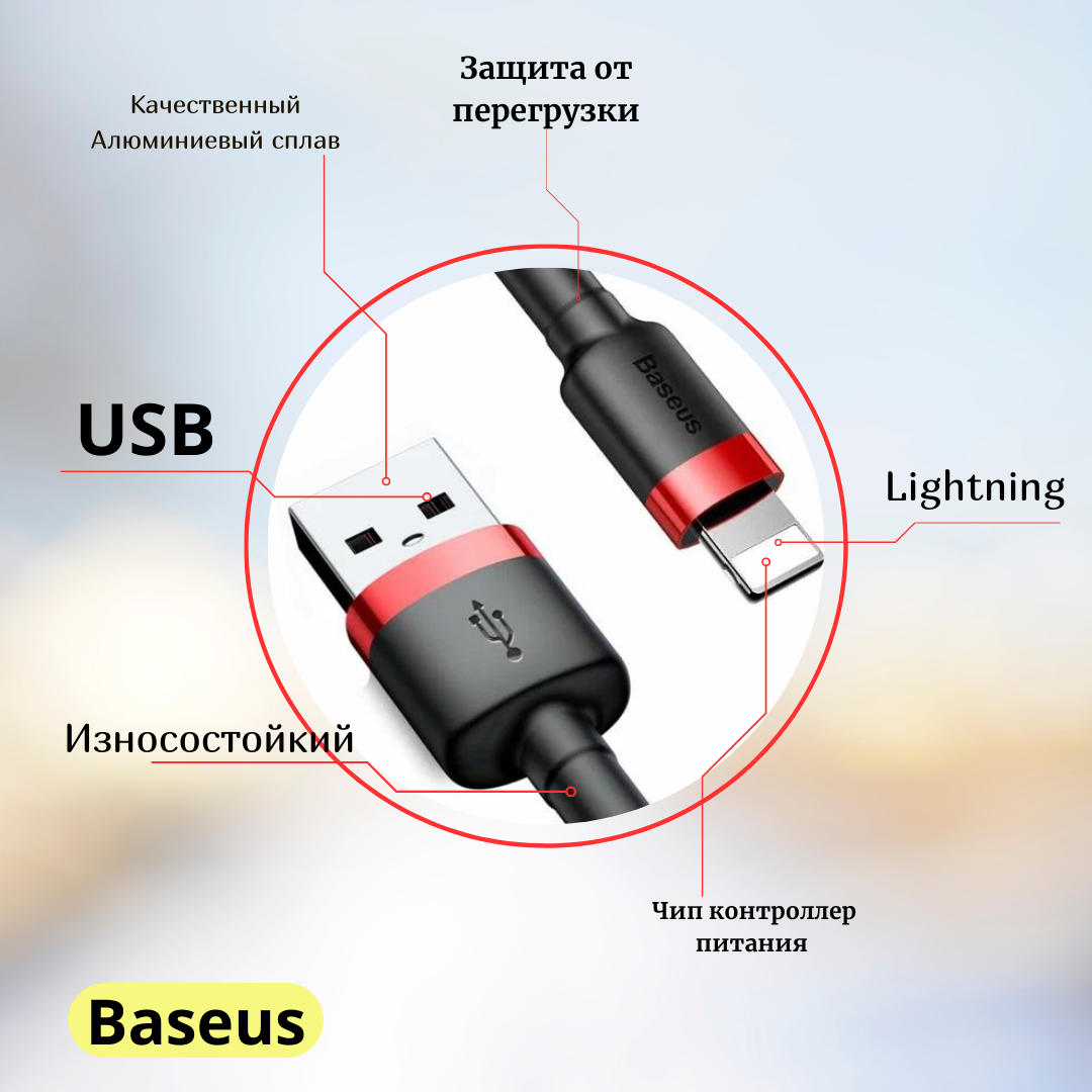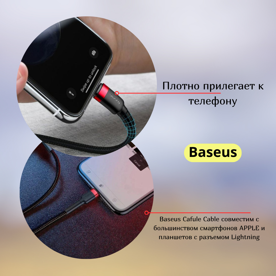 Кабель Baseus Cafule USB - Lightning (CALKLF), 2 м, 1 шт., черный/красный