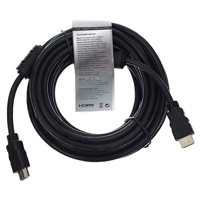 Кабель Telecom CG511D-5m HDMI-19M--> HDMI-19M, ver.1.4b, 2 фильтра, 5 метров, черный