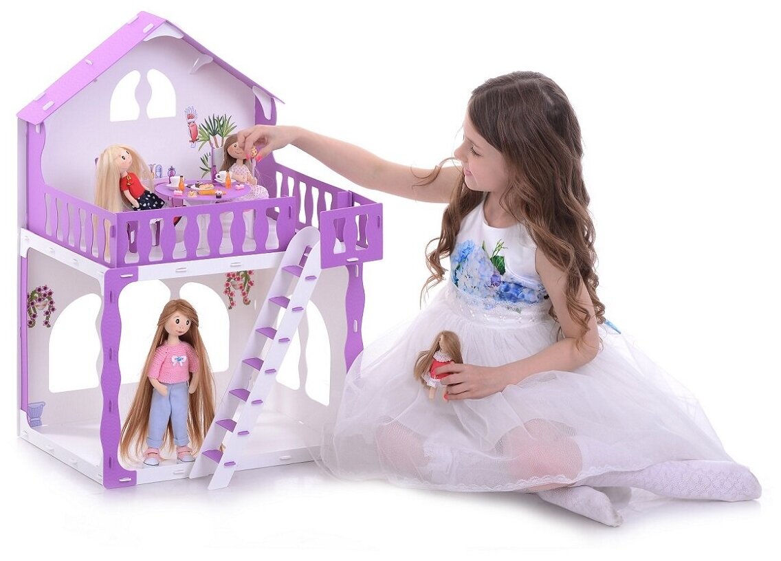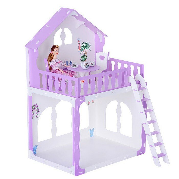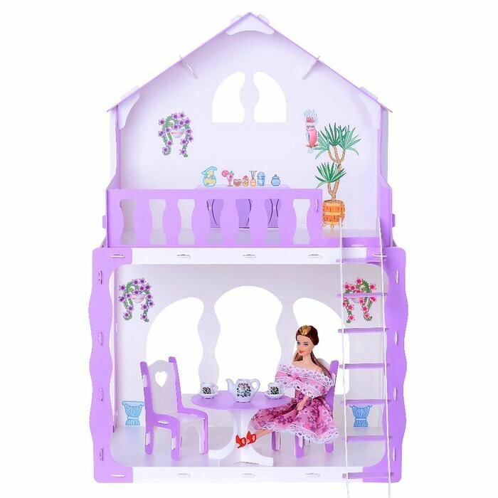 Домик для кукол "Mарина" для кукол 30 см бело-сиреневый
