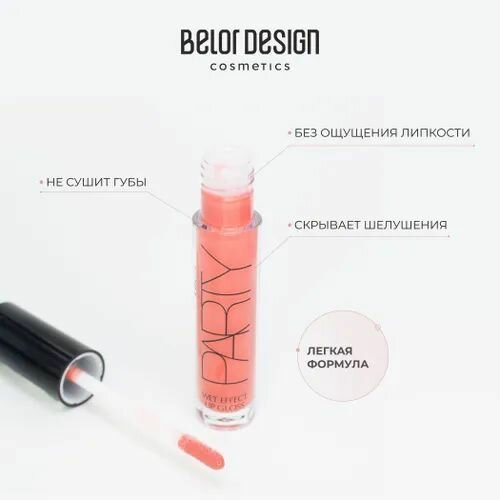 Блеск для губ Belor Design PARTY, тон 007, сочный грейпфрут х 1шт