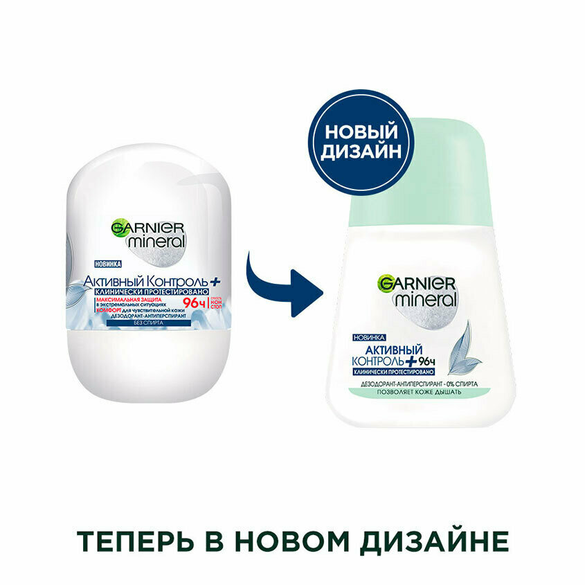 Дезодорант-антиперспирант роликовый женский GARNIER Mineral Активный контроль + Клинически протестировано, 50мл