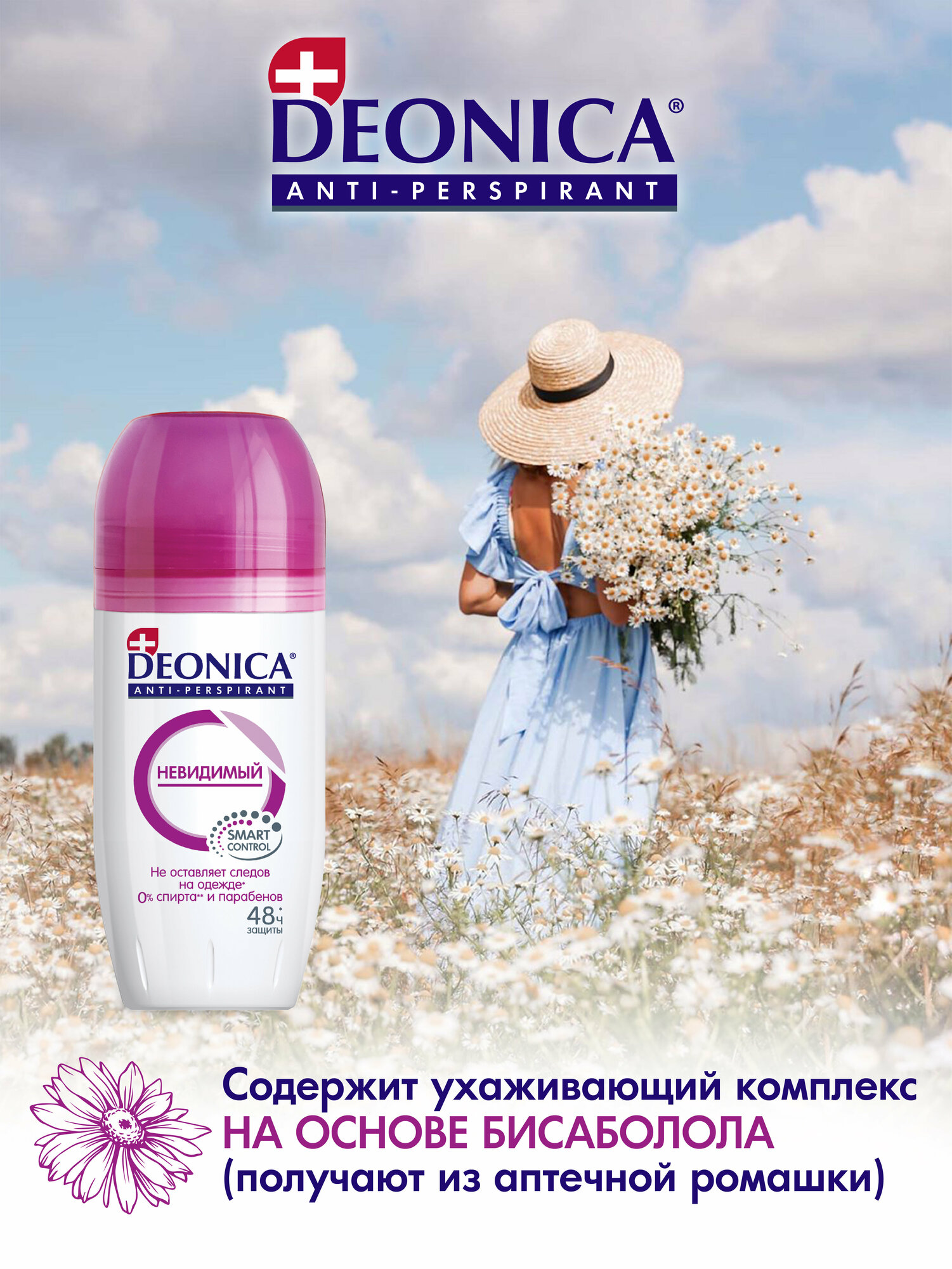 Дезодорант женский антиперспирант Deonica "Невидимый". Ролик, 50 мл. Не оставляет следов на одежде