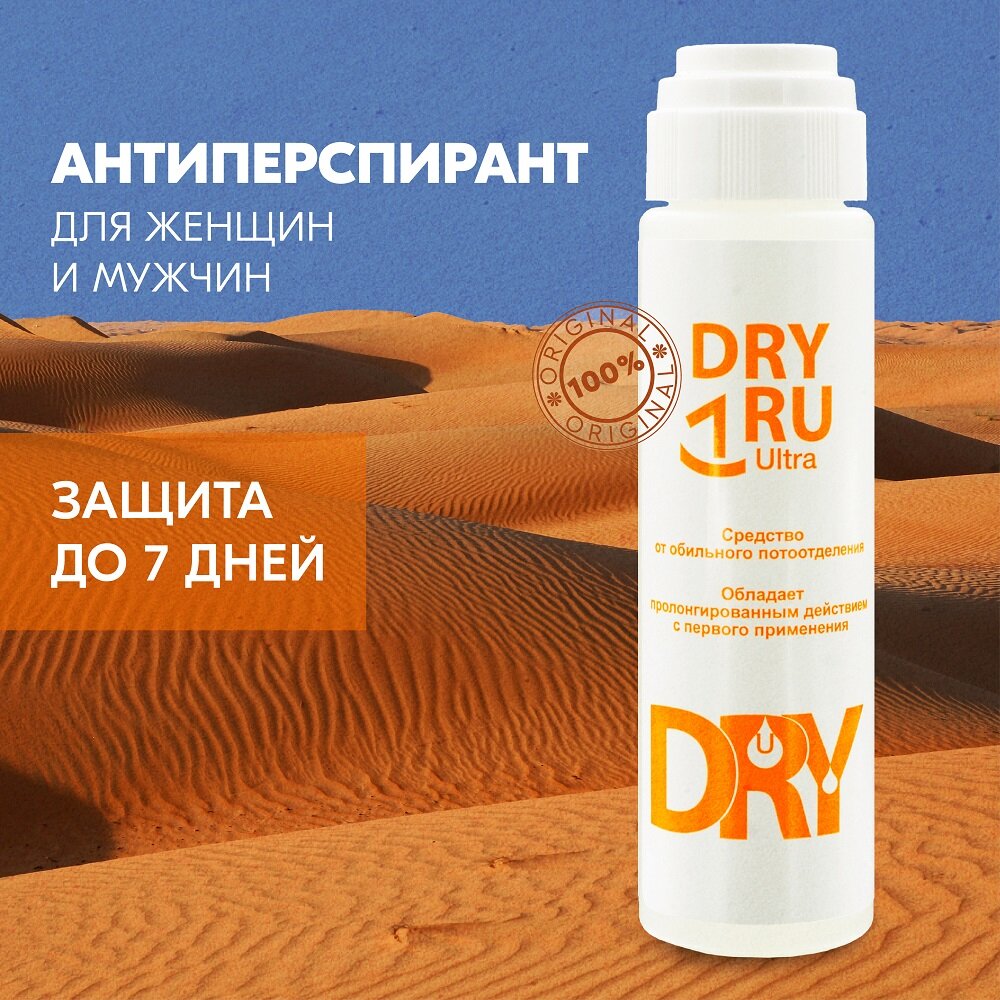 DRY RU Ultra набор: дезодорант от повышенного потоотделения с пролонгированным действием / антиперспирант от сильной потливости под мышками для мужчин и женщин драй РУ Ультра, 50мл – 2шт