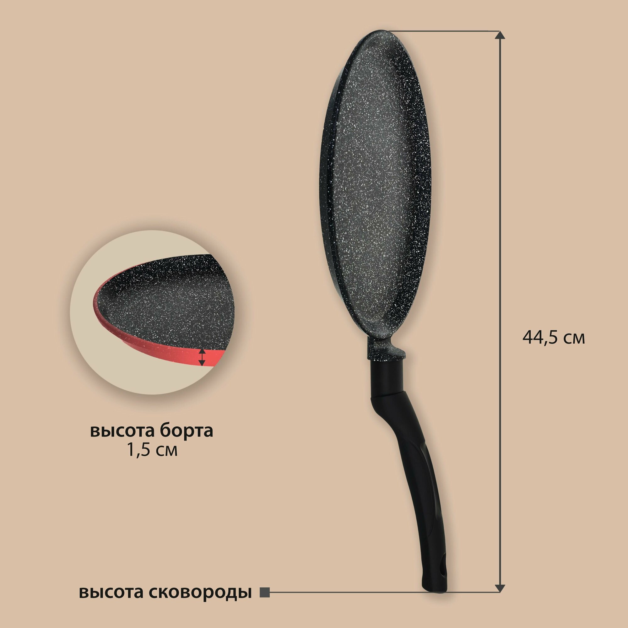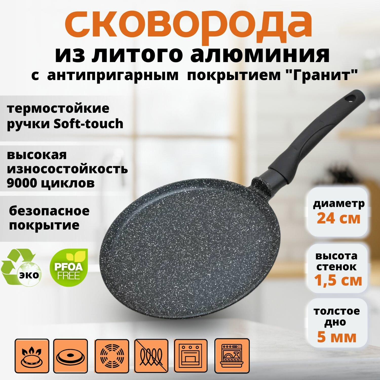 Сковорода блинная алюминиевая VICTORIA "Гранит", 24 см. черный гранит с бакелитовой ручкой.
