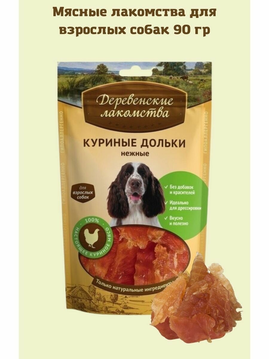 Деревенские лакомства Куриные дольки нежные для взрослых собак, 90 г, Деревенские лакомства