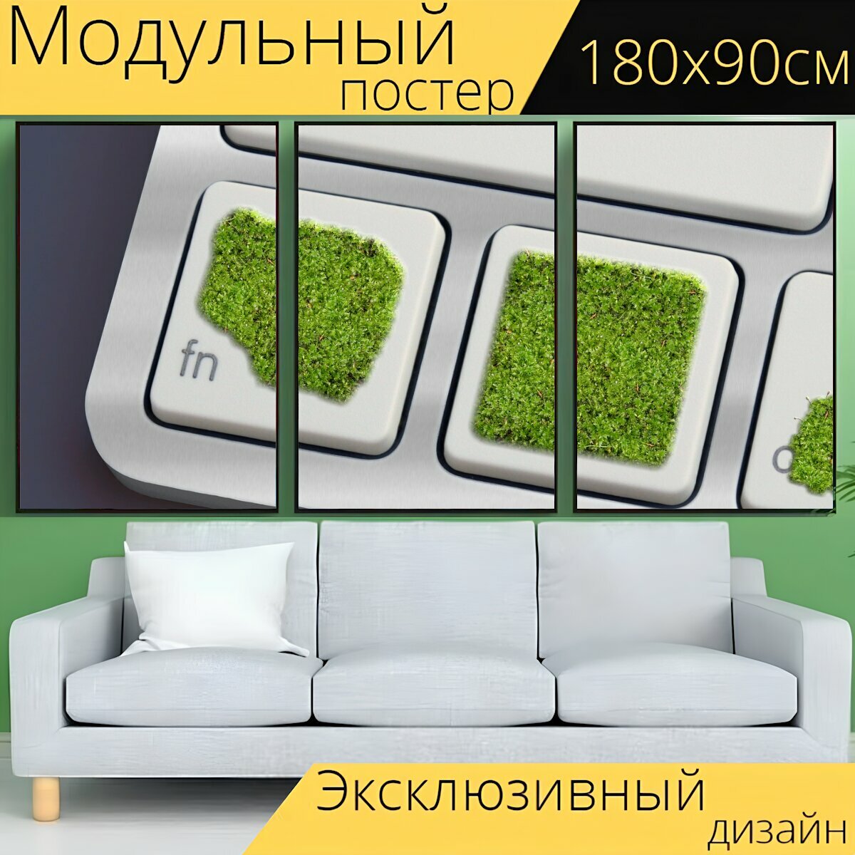Модульный постер "Клавиатура, мох, зеленый" 180 x 90 см. для интерьера интересное: