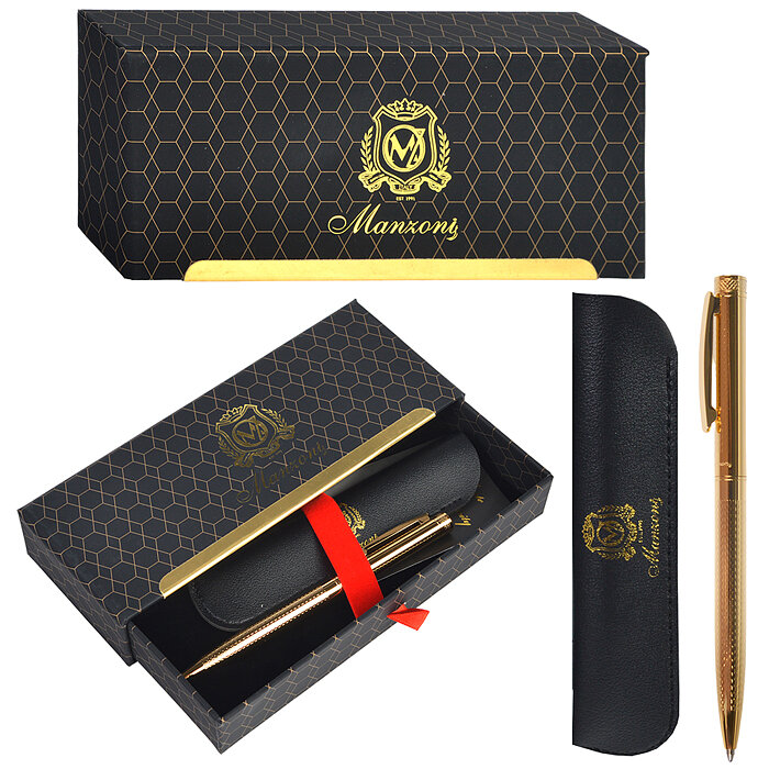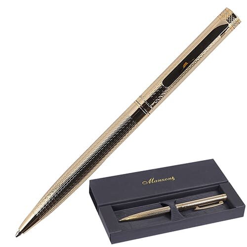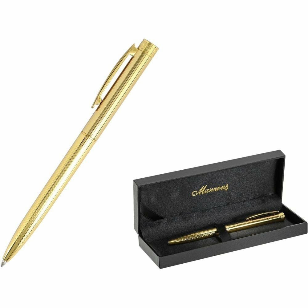 Шариковая ручка Manzoni "Treviso", Классическая, подарочная синяя, 1 мм, металлический золотистый корпус, футляр (KR013B-98M)