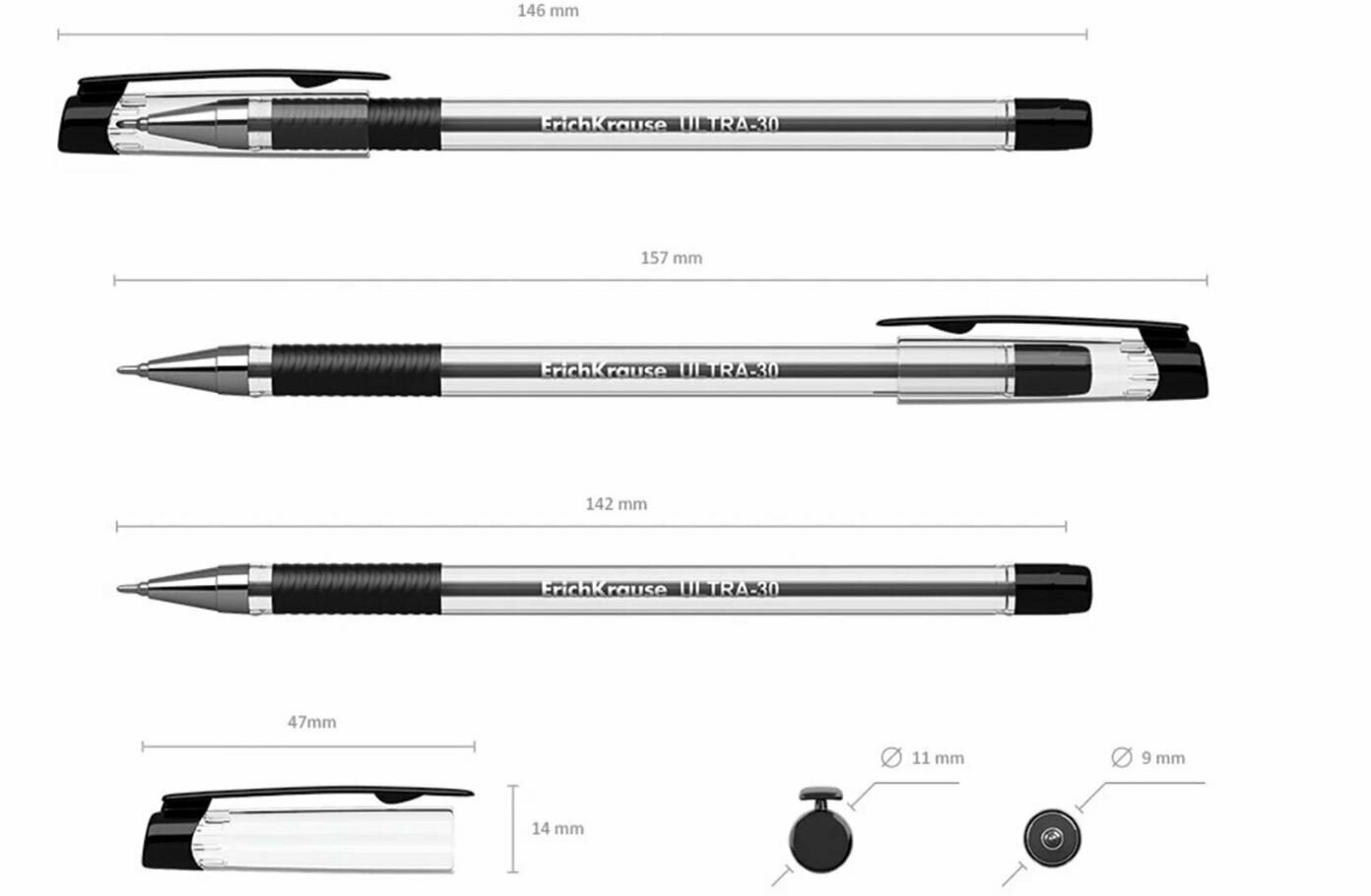 Ручка шариковая ErichKrause ULTRA-30, черная, 0.7мм, 12 шт.