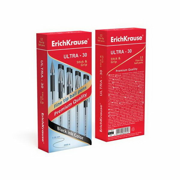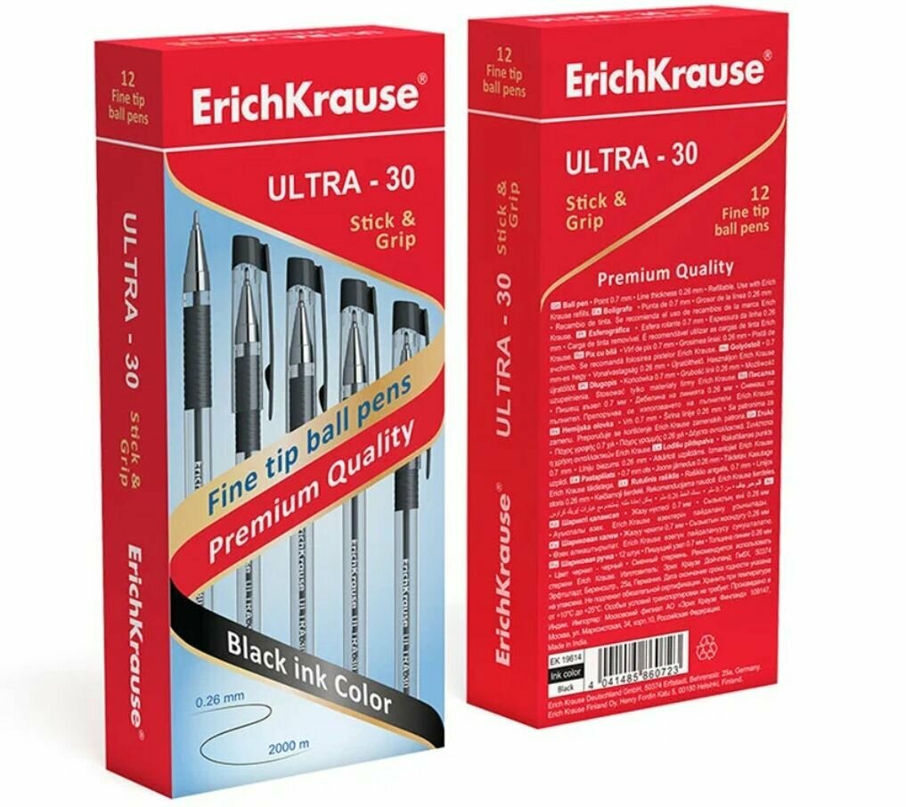 Ручка шариковая ErichKrause ULTRA-30, цвет чернил черный (в коробке по 12 шт.)