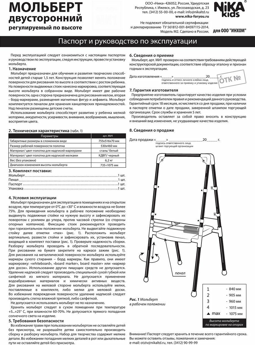 Мольберт Nika Растущий двусторонний, регулируемый по высоте