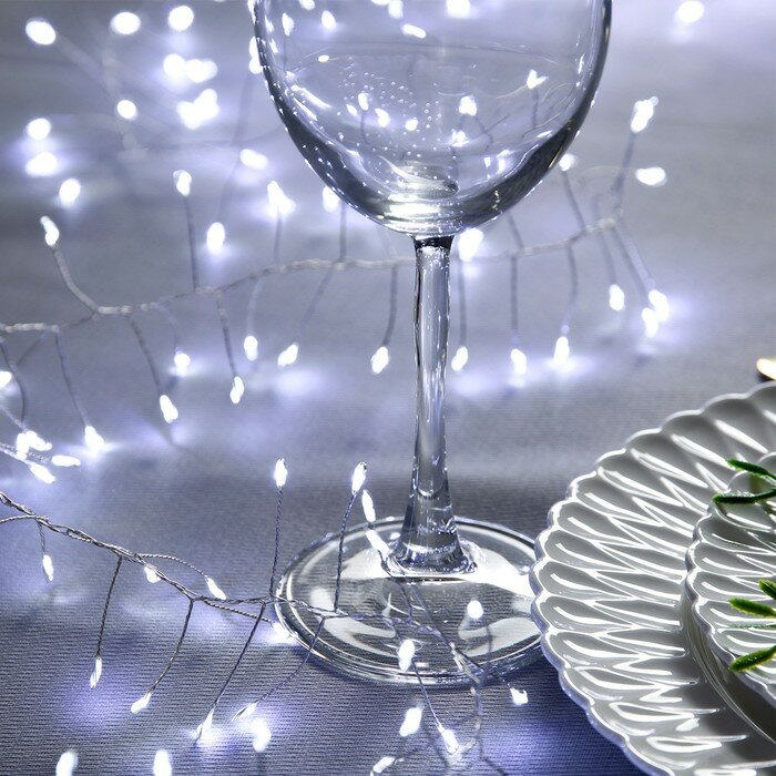 Купить Гирлянда «Мишура» 2 м роса, IP20, серебристая нить, 200 LED, свечение белое, 12 В (комплект из 2 шт)