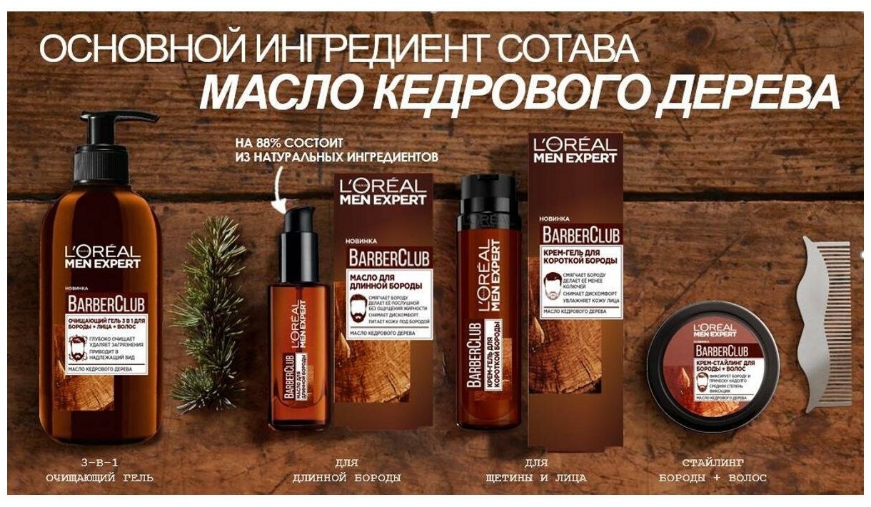 Крем-стайлинг для бороды и волос L'OREAL PARIS Men Expert Barber Club с маслом кедрового дерева, 75 мл