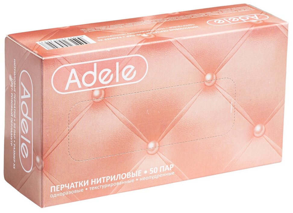 Adele, перчатки для маникюриста нитриловые (розовый перламутр, XS), 50 пар