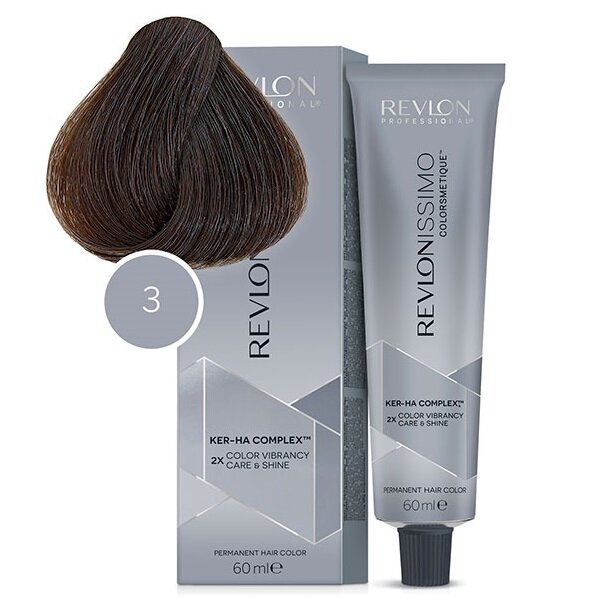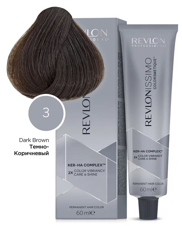 Краска для волос Revlon Professional Coloring Hair Revlonissimo Colorsmetique Care & Shine, Краситель с гиалуроновой кислотой перманентный. Перманентный Краситель с Гиалуроновой кислотой, Гарантия Результата Окрашивания + Уход за Волосами, 3
