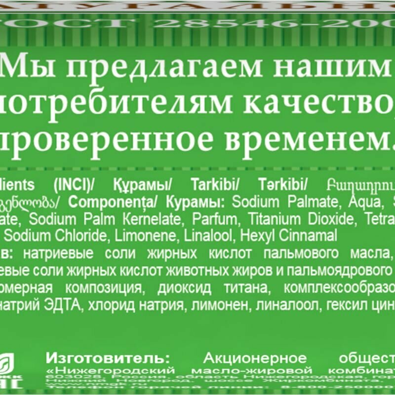 Решил попробовать данное мыло и был если честно удивлен! Хорошо мылится, запах нормальный, и главное не сушит, не раздражает кожу. Кусок большой, хватает реально надолго. Брал в сетевом магазине на момент написания отзыва за 60 рублей. Отрицательными отзывами из-за цены на маркете подпортили рейтинг хорошему товару. |