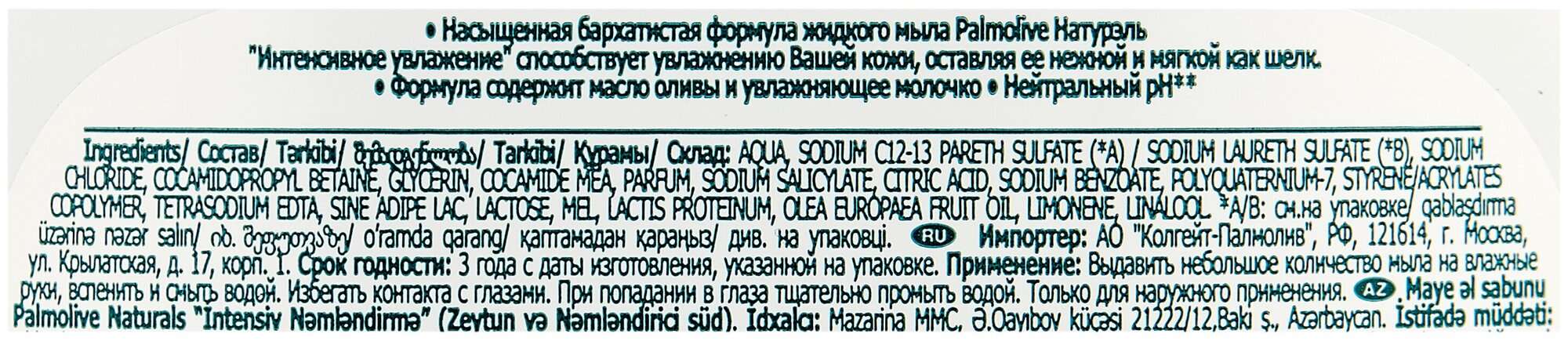 Мыло жидкое PALMOLIVE Натурэль 300мл"Интенсивное увлажнение" (Олива и Увлажняющее молочко)
