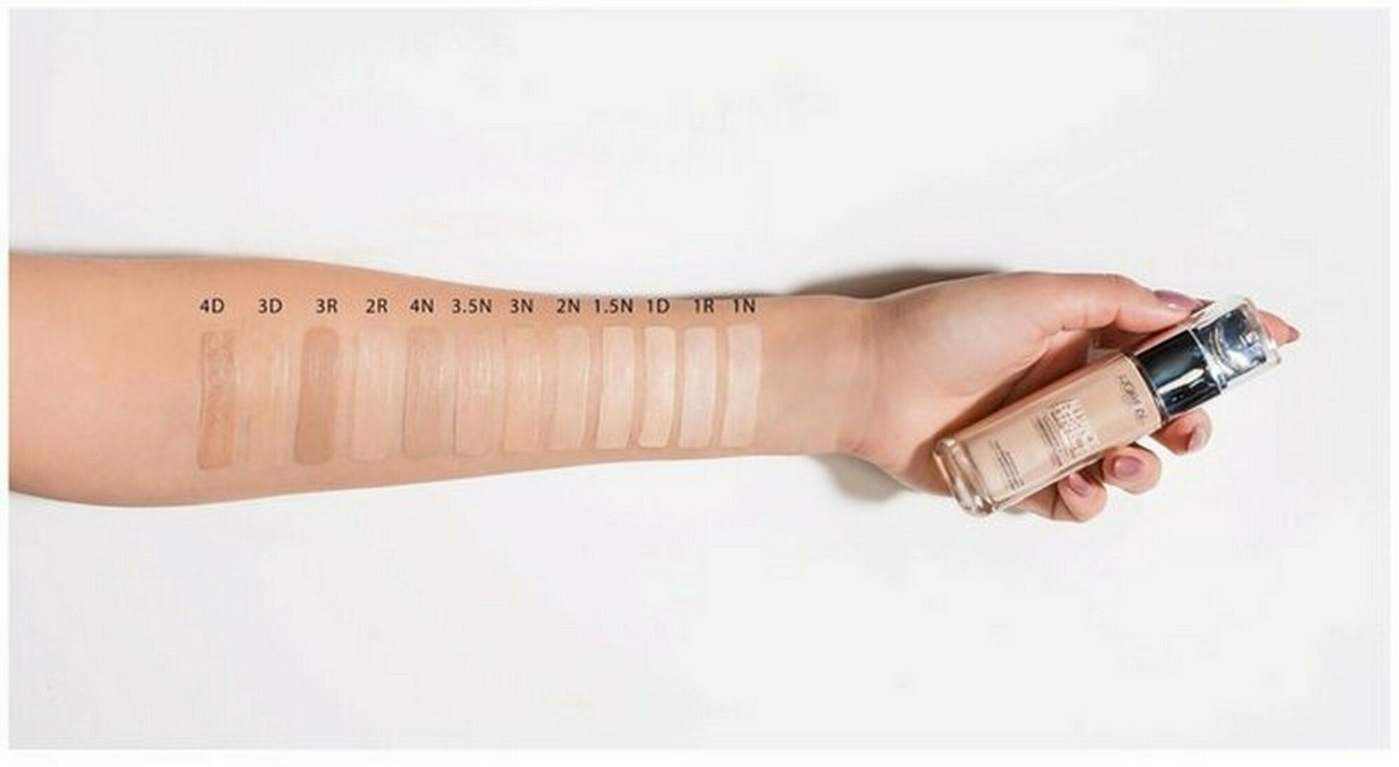 | Отзыв: | У меня в оттенке r3-c3. Адаптируется к коже хорошо, стойкость средняя (что объясняется плотностью текстуры и эффектом сияния). На коже не полосит, не подчеркивает шелушение. |