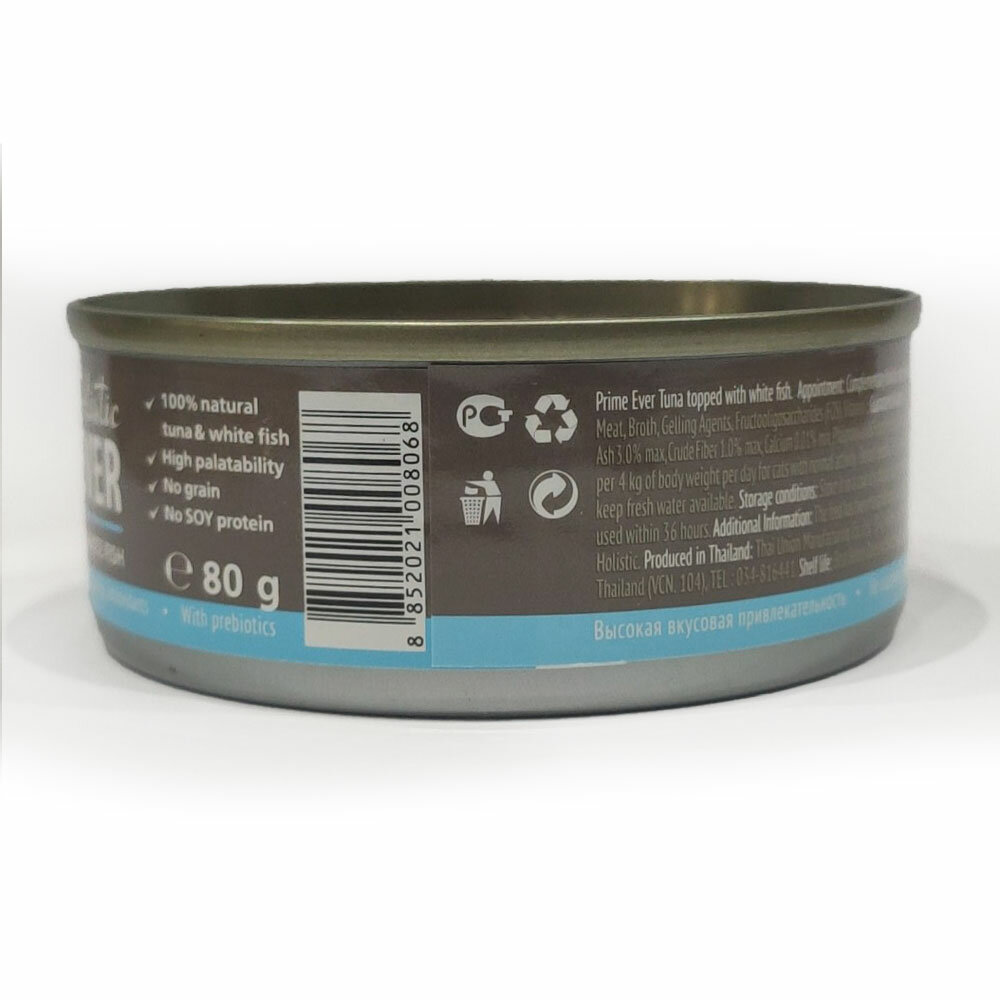 PRIME EVER TUNA TOPPED WITH WHITE FISH холистик для кошек и котят с тунцом и белой рыбой в желе (80 гр х 24 шт)