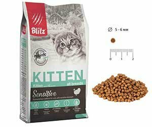 Корм сухой для котят BLITZ Sensitive Kitten Turkey, 2 кг (индейка) полнорационный