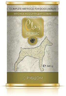 Корм полнорационный консервированный Clan CLASSIC для собак, Мясное ассорти с рубцом, 340г, 12 шт.