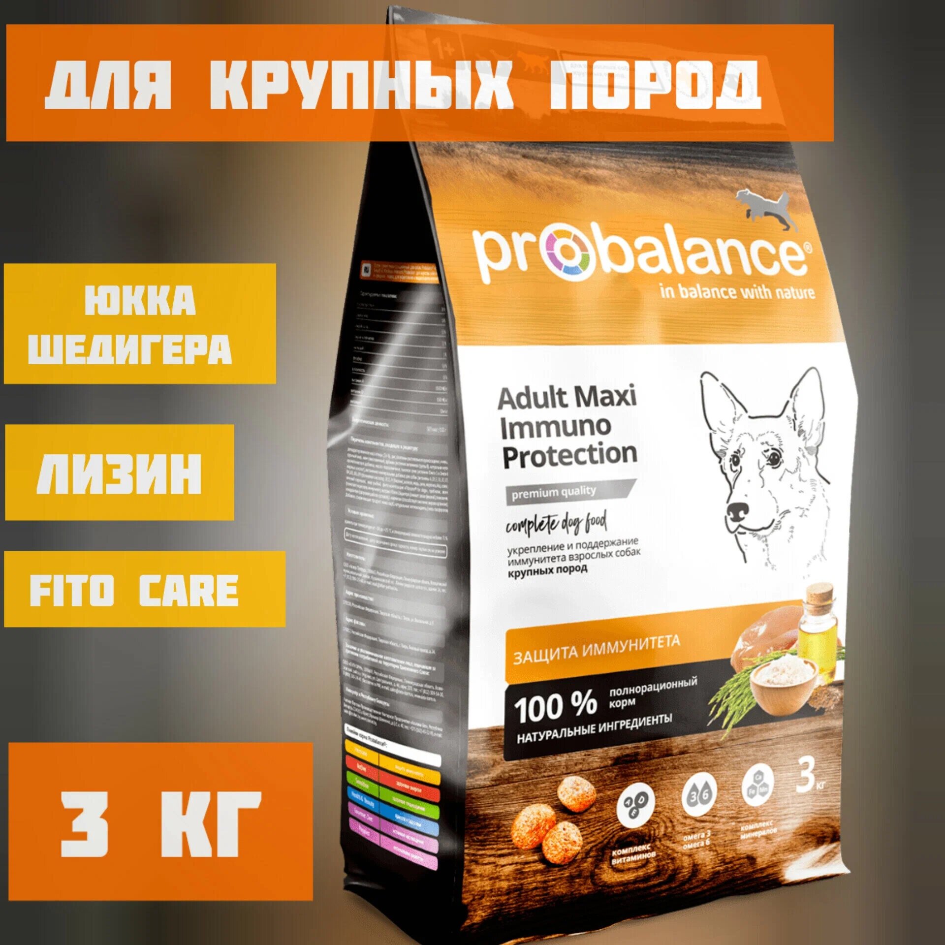 Probalance Сухой корм для взрослых собак крупных пород, укрепление и поддержание иммунитета 44 PB 677, 3 кг