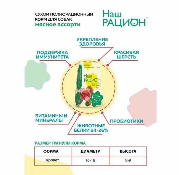 Ниже Вы можете прочитать отзывы на Наш Рацион 45748 сух.для собак Мясное ассорти 15кг, ознакомится с подробными характеристиками, посмотреть интересные обзоры и фотографии на Наш Рацион 45748 сух.для собак Мясное ассорти 15кг.
