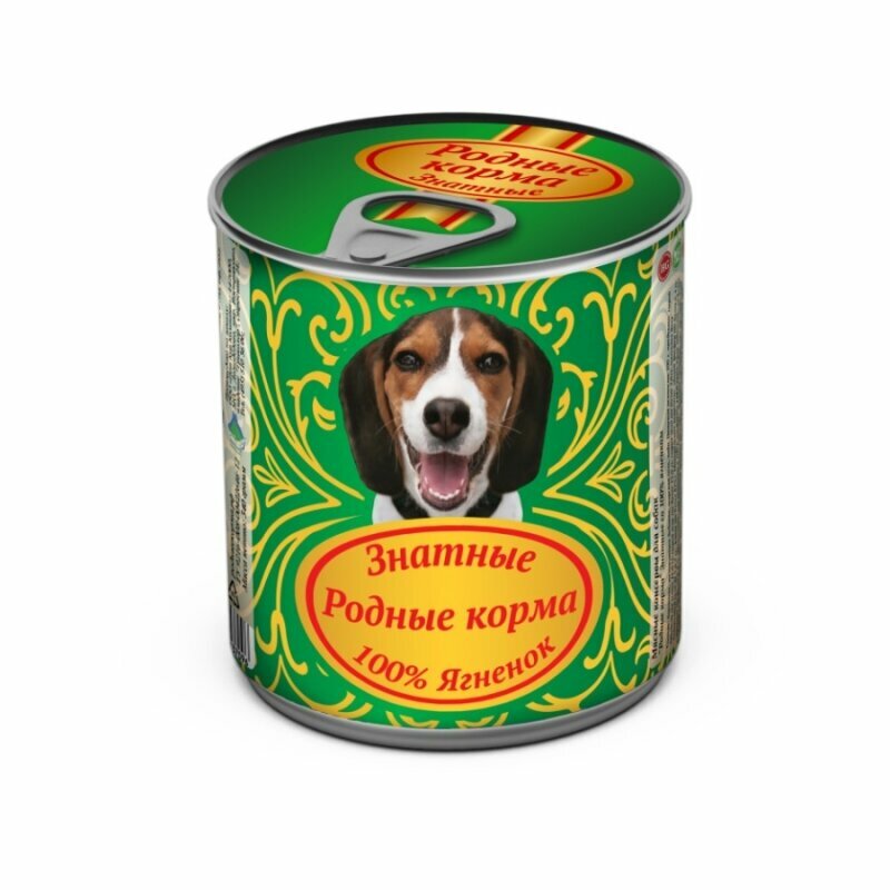Родные корма Консервированный корм для собак Знатные консервы 100 РїСЂРѕС†. ягненок 340 г 62160