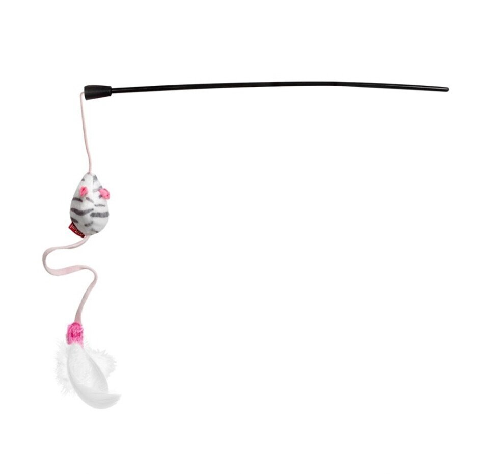 GiGwi Дразнилка на стеке с мышкой,пластик, перо куриное 75111, 0,059 кг, 42519
