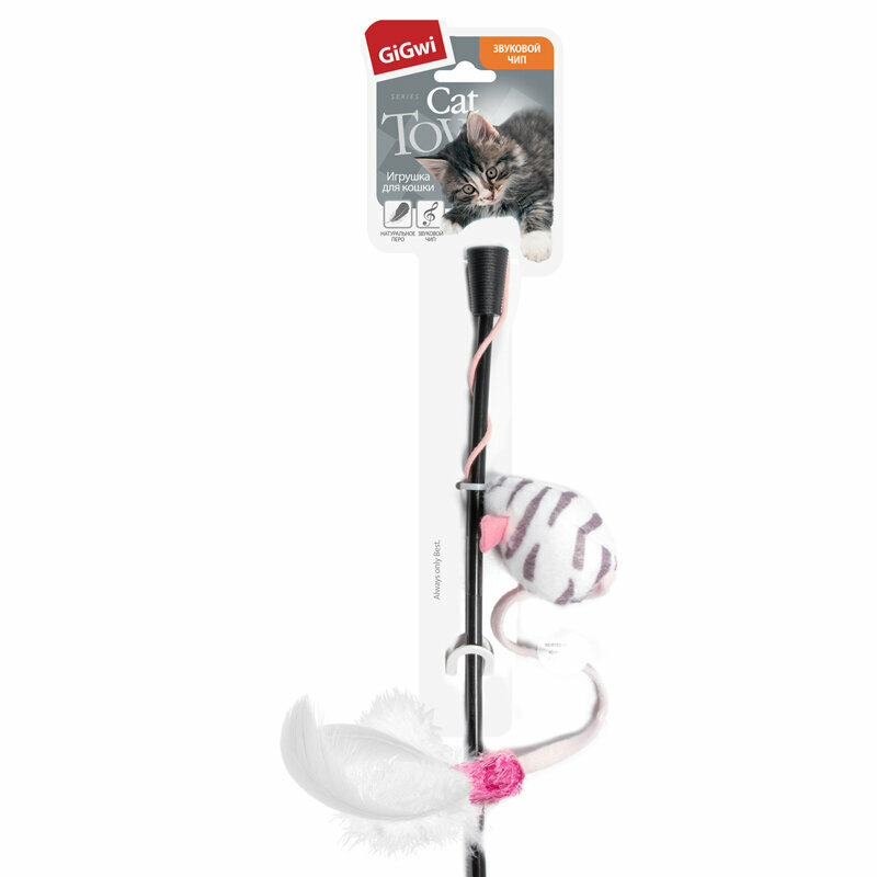 Игрушка для кошек GIGWI Cat Toys Дразнилка мышка со звуковым чипом и перьями (51 см)