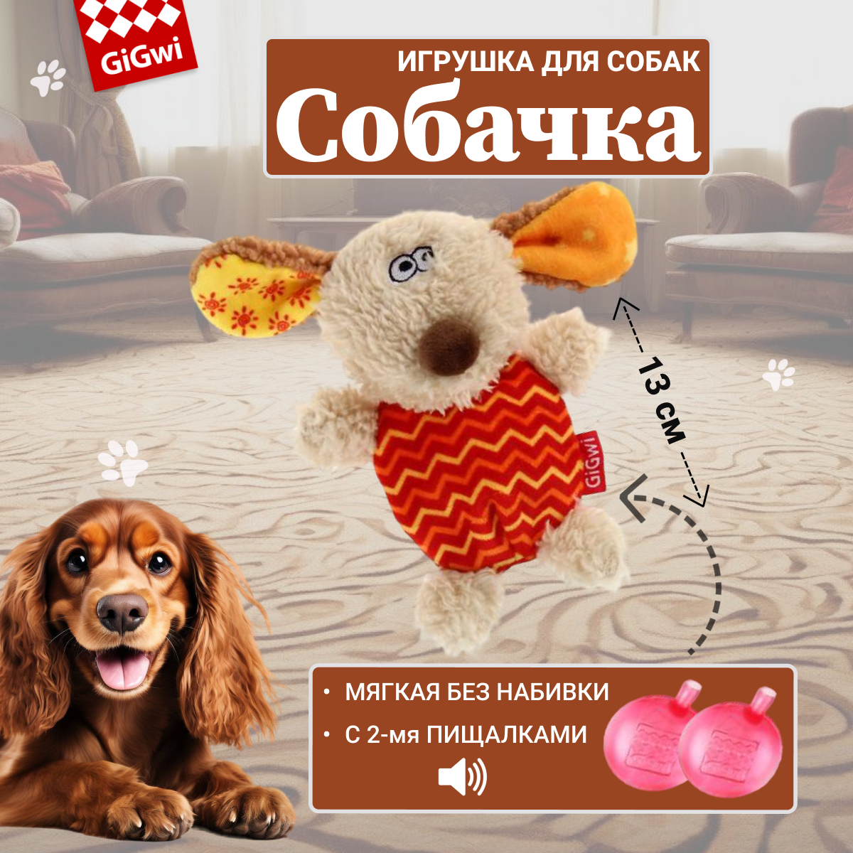 Купить GIGWI Игрушка для собак Собачка с пищалкой 13 см