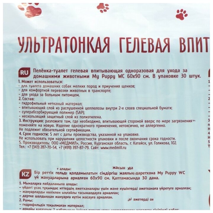 MY PUPPY Подстилка вптывающая одноразовая для животных 60*40, 30 штук