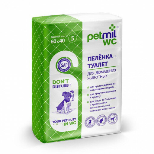 Купить Пеленки Petmil впитывающая одноразовая с суперабсорбентом 60*40*5шт / 1 шт