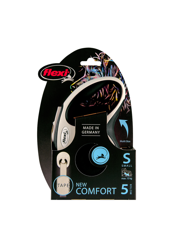 Поводок-рулетка Flexi New Coмfort tape S, 5 м, 15 кг, черный