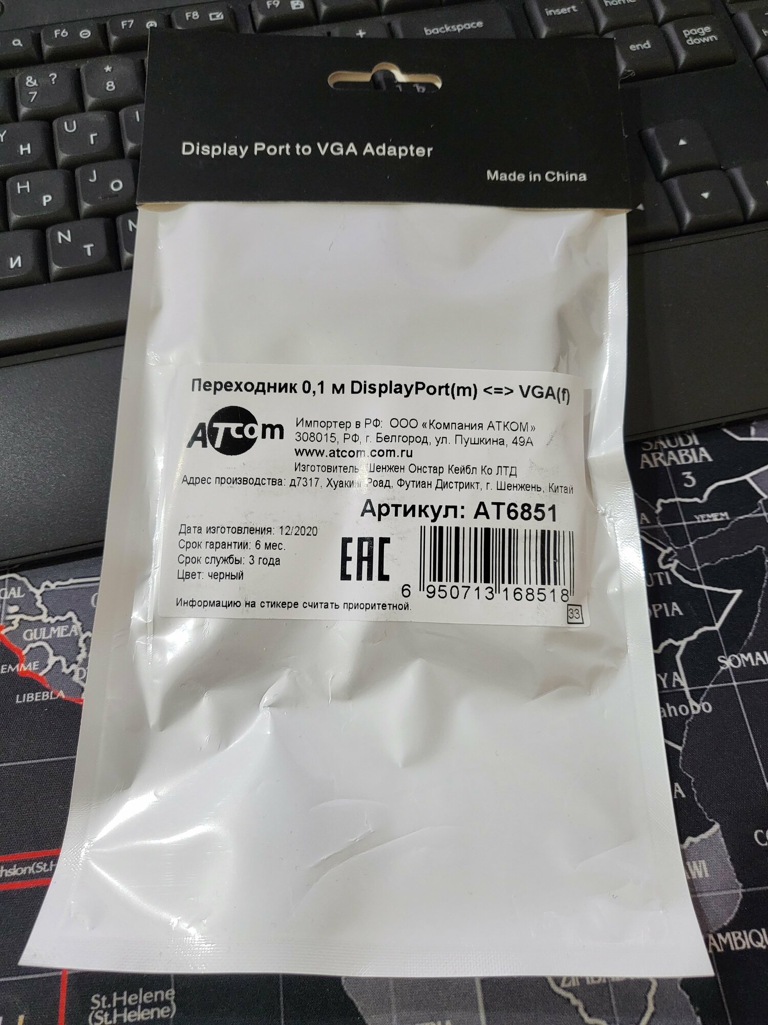 Переходник Atcom AT6851 0.1 м DisplayPort(m)/VGA(f) интересное:
