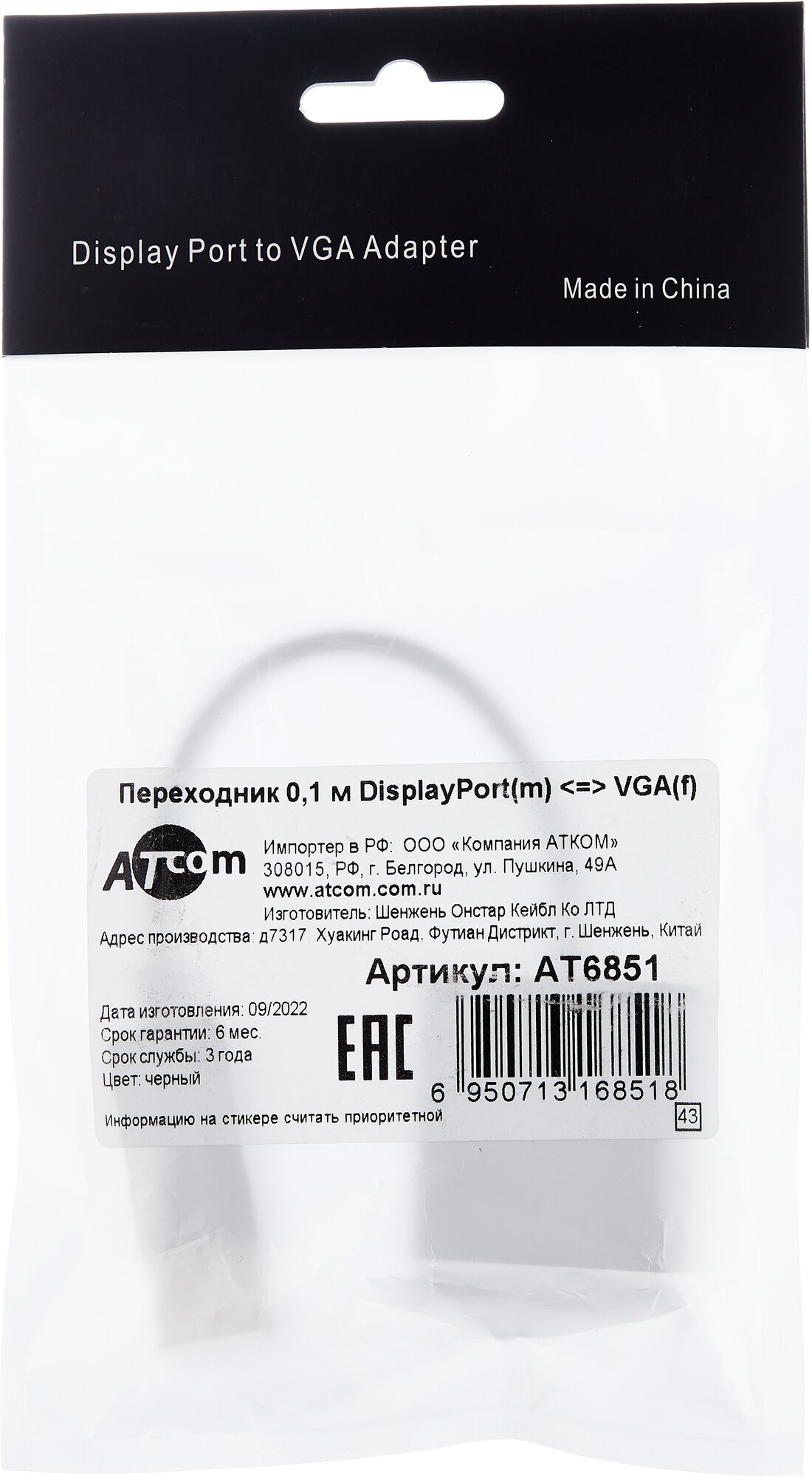 Переходник/адаптер Atcom DisplayPort - VGA (AT6851), 0.1 м, черный