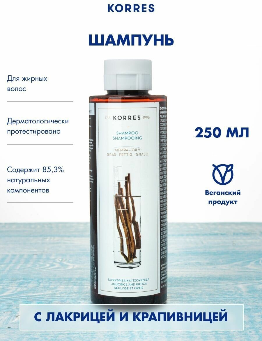 Korres Шампунь для жирных волос лакрица и крапива, 250 мл