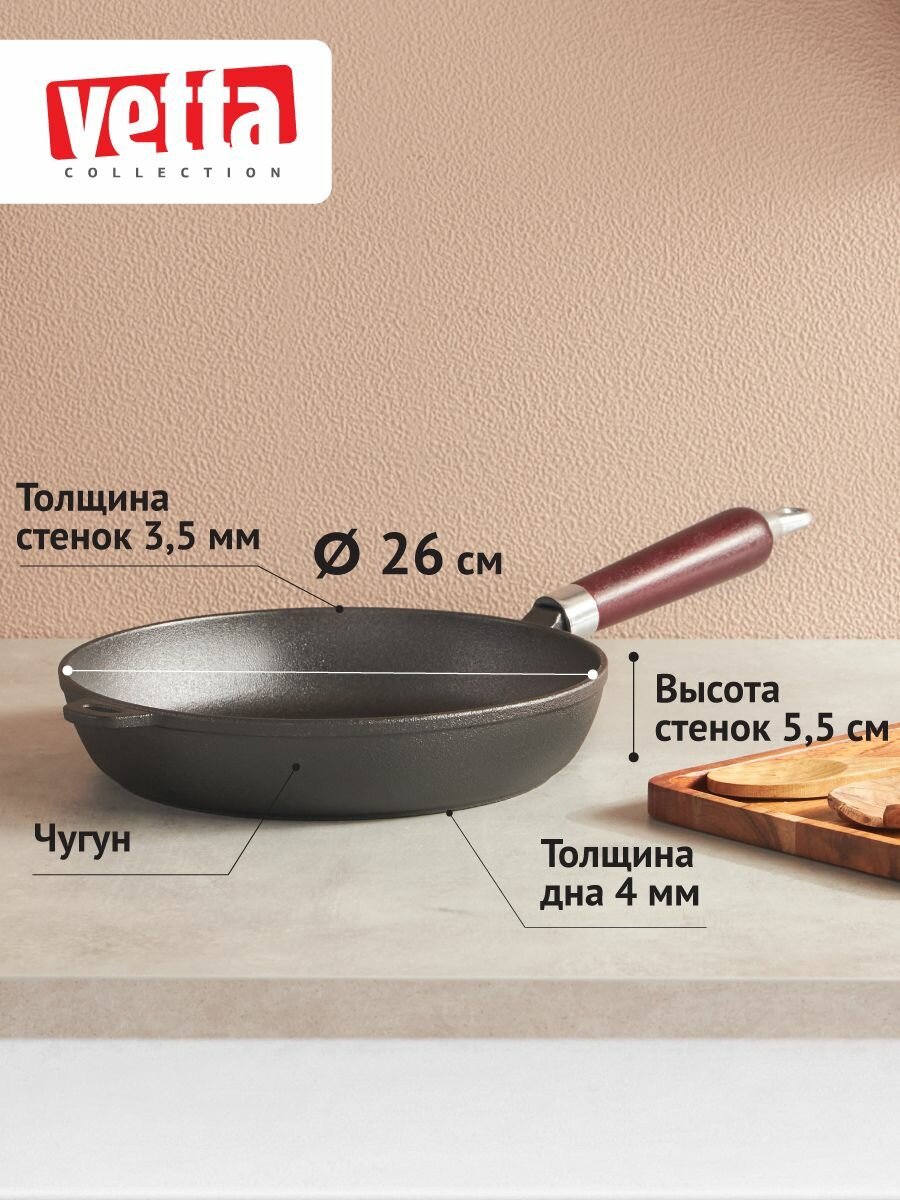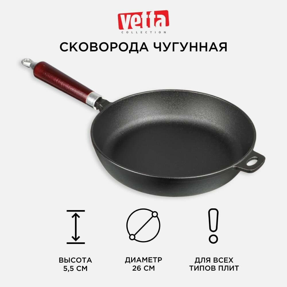 Сковорода Vetta чугун, 26х5,5см, деревянная ручка (808-007) интересное: