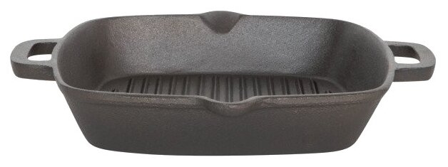 | Плюсы: | Чугун, вес составляет около 3 кг, на моих точных 2.9567 кг, гриль, 26 см, хотя рабочая часть уже около 18 см, один стейк большой помещается |
