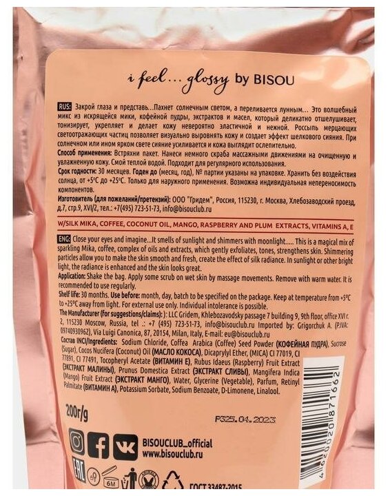 BISOU Скраб-шиммер для тела Кофейный 200 г интересное: