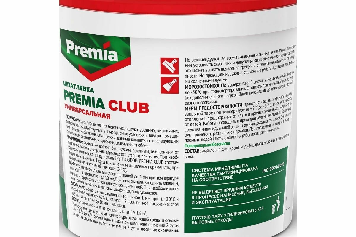 PREMIA CLUB шпатлевка универсальная наружных для внутренних работ, (1,5кг)