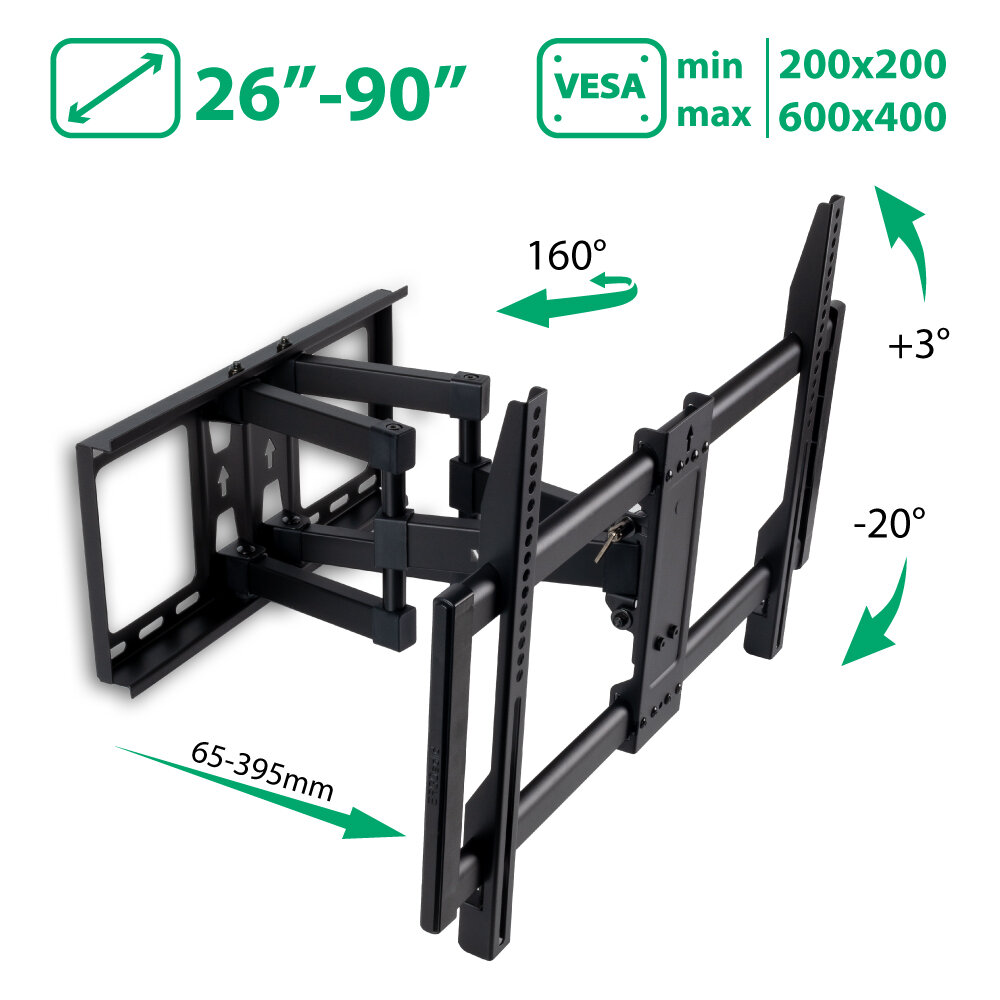 Кронштейн для телевизора настенный VLK TRENTO-20 / до 90 дюймов / до 45 кг / vesa 600x400 / наклонно-поворотное крепление для тв / держатель для телевизора