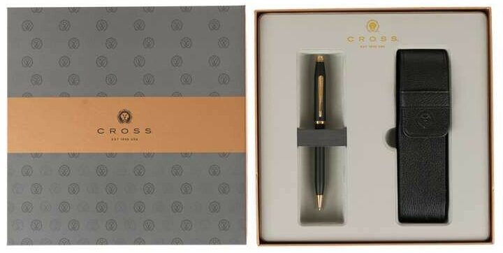 Подарочный набор CROSS: Ручка шариковая Century II Classic Black + Чехол на две ручки из искусственной кожи черного цвета (2502WG/287)