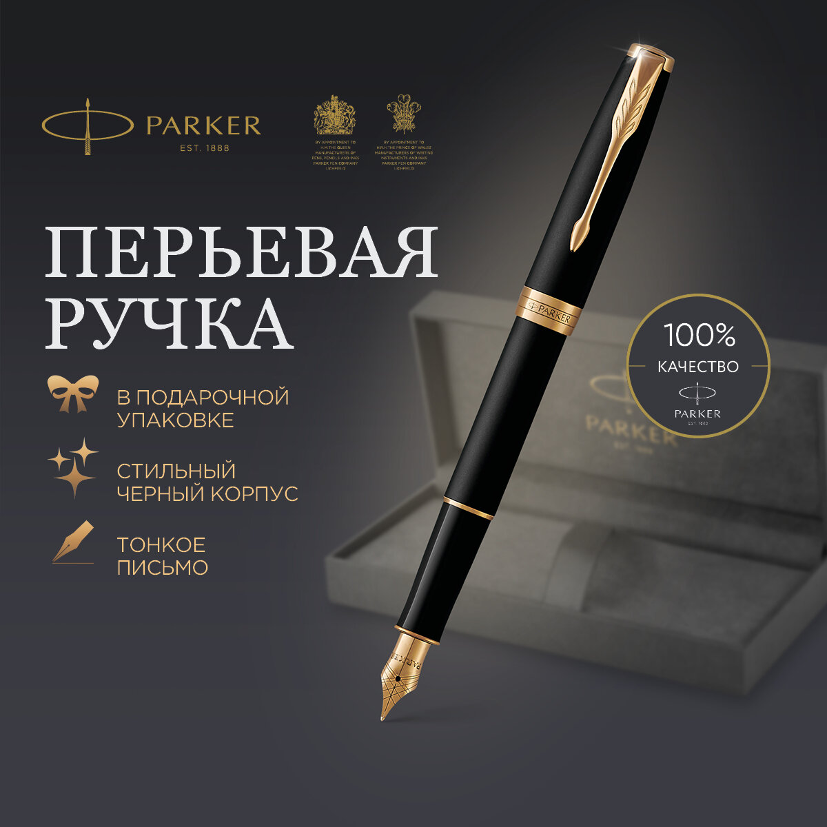 Ручка перьевая PARKER Sonnet Core Matt Black GT, корп. черный матов. лак, позолоч. дет, черн,1931516