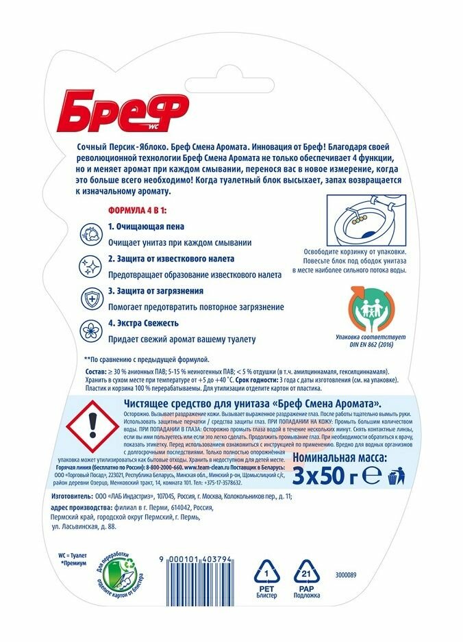 СохранитьБлок для унитаза Bref бреф Perfume Switch Сочный Персик–Яблоко 3*50 г интересное: